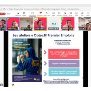 • Interventions de consultant·e·s Apec auprès des étudiants (webinaires, ateliers sur campus)