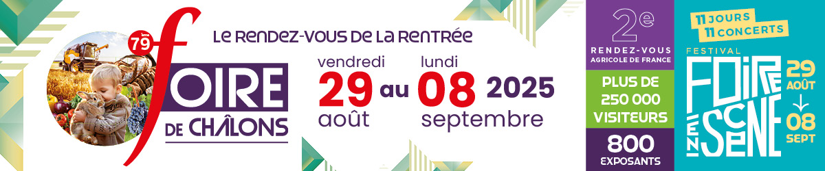 Organisée chaque année à Châlons-en-Champagne, la Foire de Châlons est un rendez-vous majeur qui attire plus de 200 000 visiteurs. Elle réunit entreprises, institutions, collectivités et grand public autour de thématiques clés : agriculture, innovation, économie, emploi et formation.