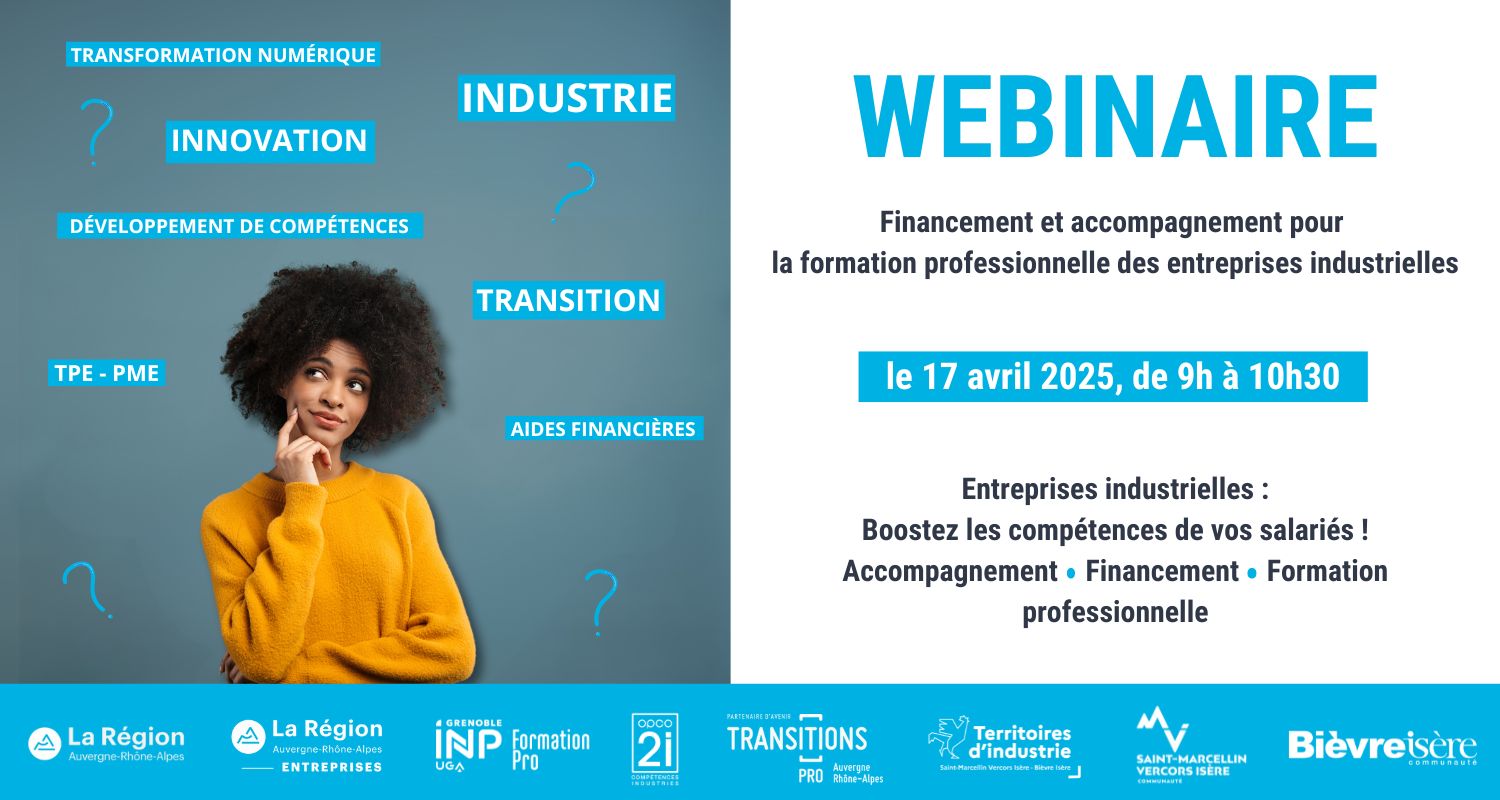 Dans le cadre de Territoire d’Industrie, Saint Marcellin Vercors Isère Communauté et Bièvre Isère Communauté, en partenariat avec OPCO 2i, Transition Pro, Agence Auvergne Rhône Alpes Entreprises et la Formation Pro Grenoble INP-UGA, organisent un webinaire à destination des entreprises industrielles du territoire pour découvrir tous les dispositifs d’accompagnement et les aides financières possibles.