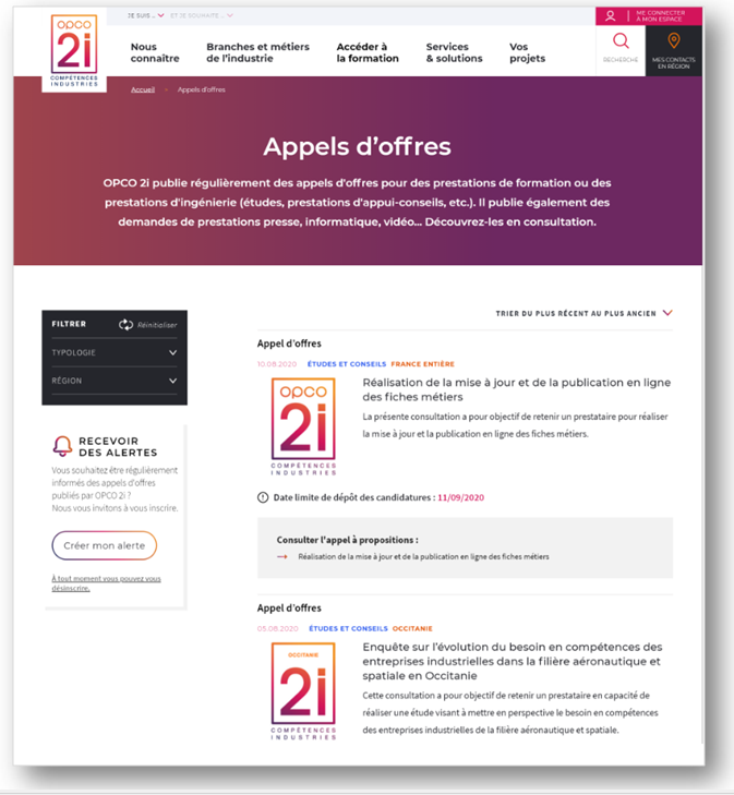 Pour vous permettre d’optimiser votre temps et avoir l’assurance d’adresser votre candidature au bon moment, OPCO 2i vous propose un module d’alertes.