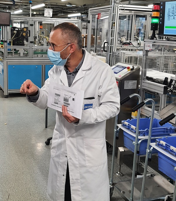 Filiale de ce groupe allemand, « ZEISS Vision Care France » est spécialisée dans la fabrication et la commercialisation de verres ophtalmiques destinés au marché français. L’entreprise emploie près de 350 collaborateurs sur ses 3 sites français (Fougères, Aubergenville et Paris) dont 250 sur le site de Fougères. Les administrateurs ont bénéficié d’une visite du site et d’une intéressante présentation du process de fabrication des verres ophtalmiques réalisée par Christophe Belin , directeur des Opérations.