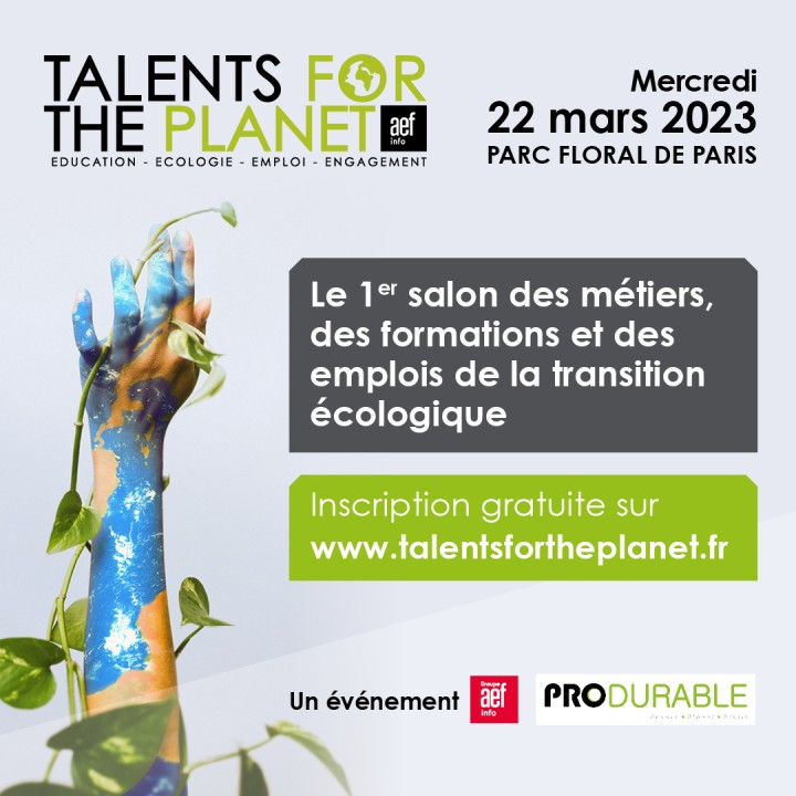 Le salon Talents for the Planet se tiendra le mercredi 22 mars de 9h à 18h au Parc Floral de Paris. Retrouvez plus d’information sur l’évènement Talents for the Planet.